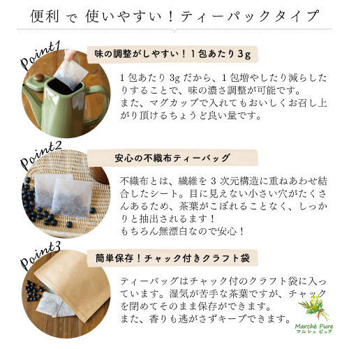 ノンカフェインなので、男女問わず幅広い年代の方々におすすめの健康茶です。夏は冷やしてお召し上がり下さい。