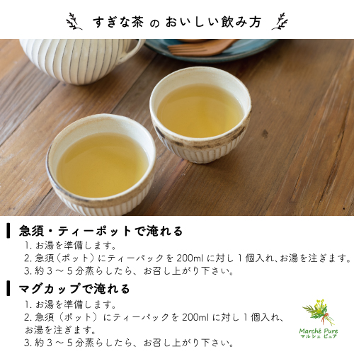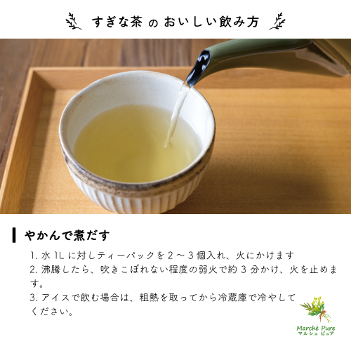 すぎな茶は、緑茶のような色で草の香りがふわっとする飲みやすいお茶です。